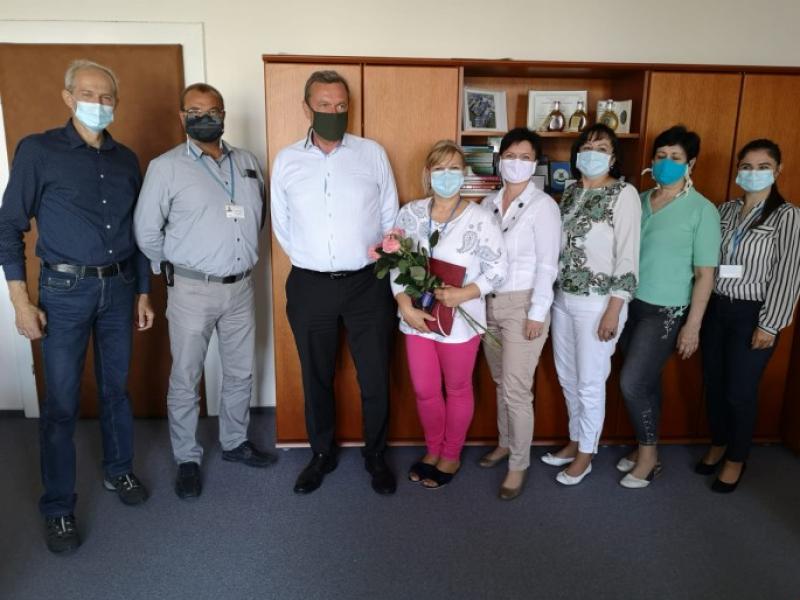 Životné jubileum zamestnankyne úradu Pri príležitosti životného jubilea zablahoželal riaditeľ úradu Ing. Emil KOŠÚT pani Ing…